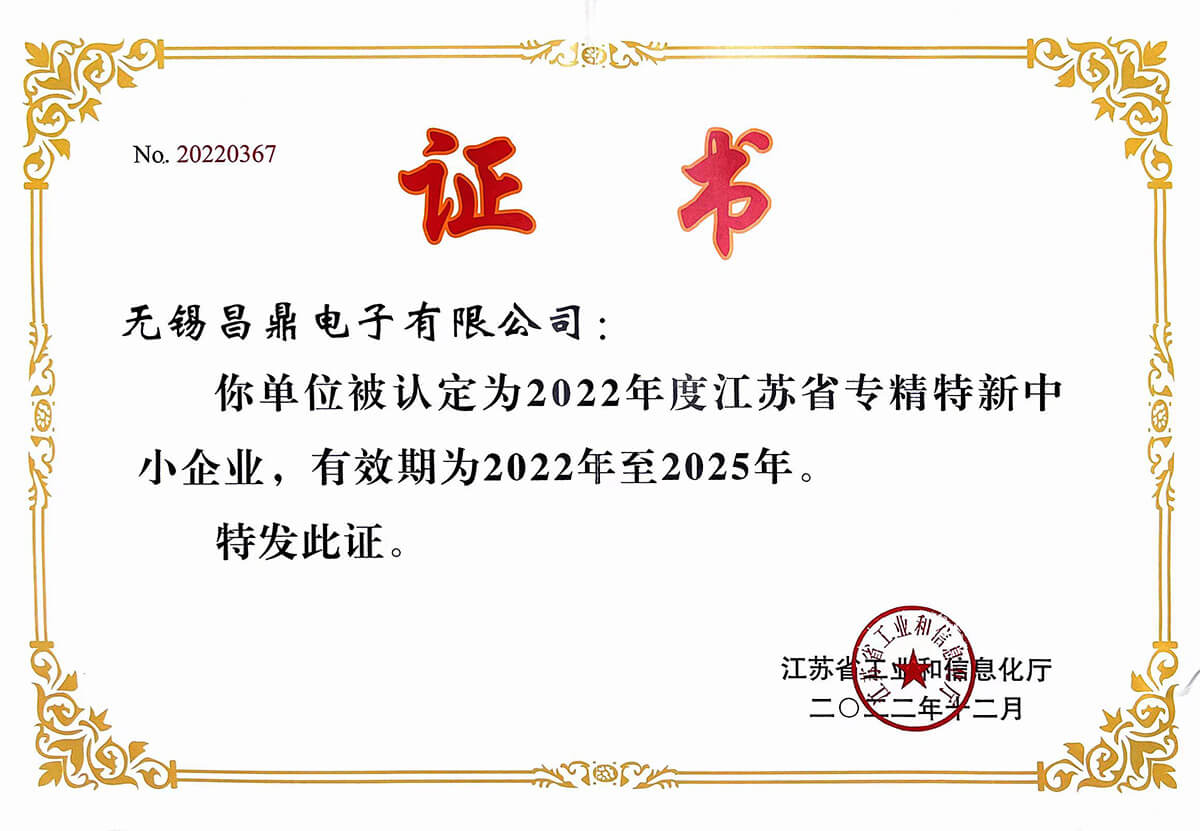 2022年-通過(guò)“兩化融合管理體系”評定、獲評“無(wú)錫市工程技術(shù)研究中心”“江蘇省2022年專(zhuān)精特新中小企業(yè)”。