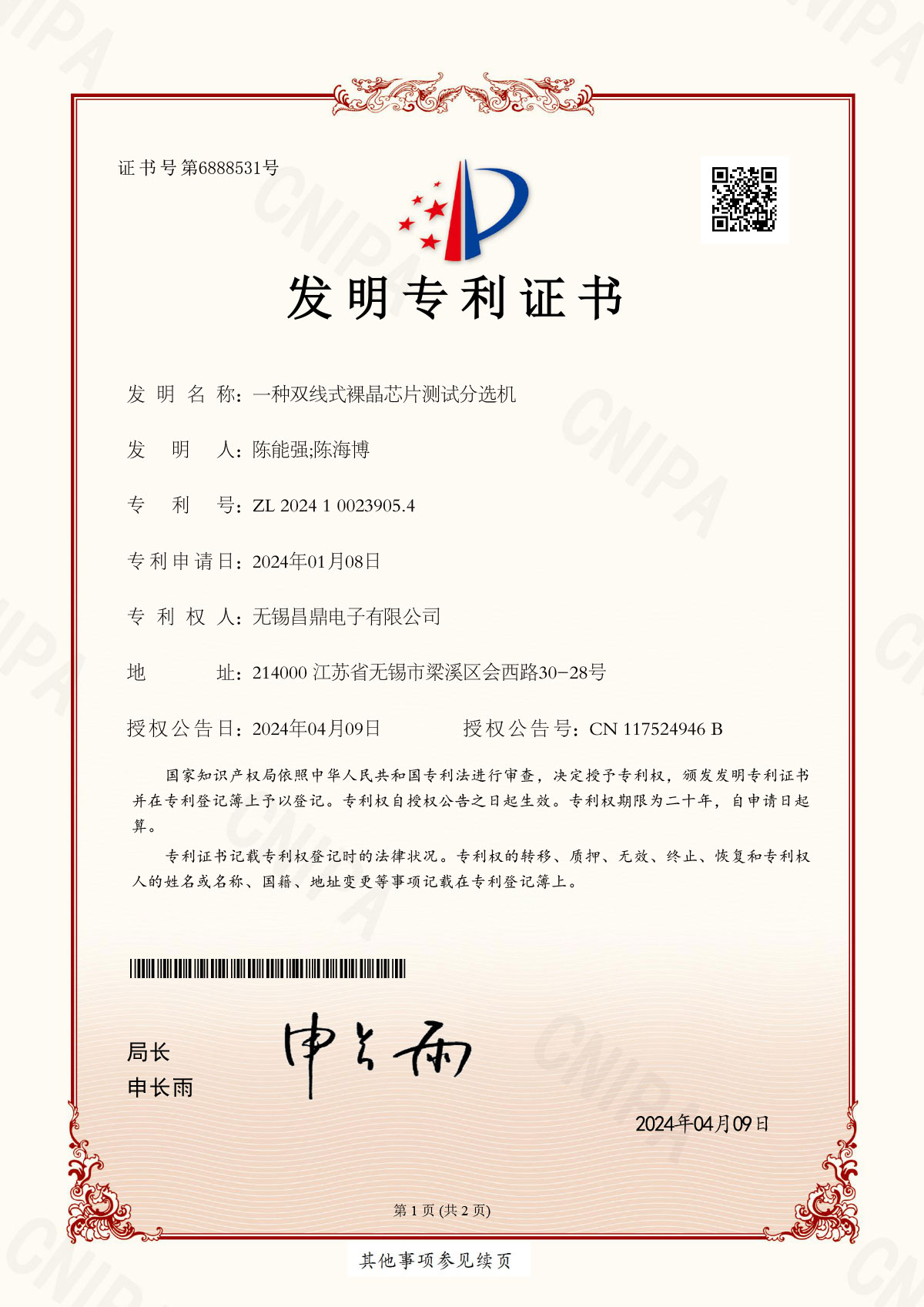 專(zhuān)利證書(shū)